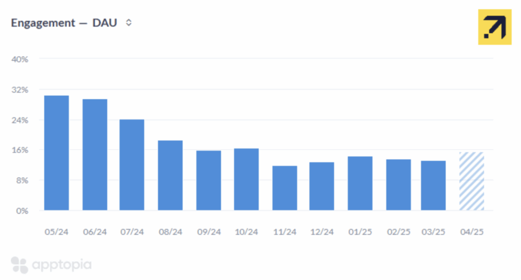 In 4Q24, Apptopia’s data showed a significant deceleration in RBLX’s DAUs. The deceleration was so out-of-consensus that we were concerned about sharing it with our customers. It turned out that our data had the right signal all along in 4Q. Now that 1Q25 has come to a close, we are seeing a rebound in RBLX’s data that we read as better than what consensus expects. While January accounted for the best YoY growth in DAUs in 1Q25, both March and April (MTD) are showing sequential improvements in growth.