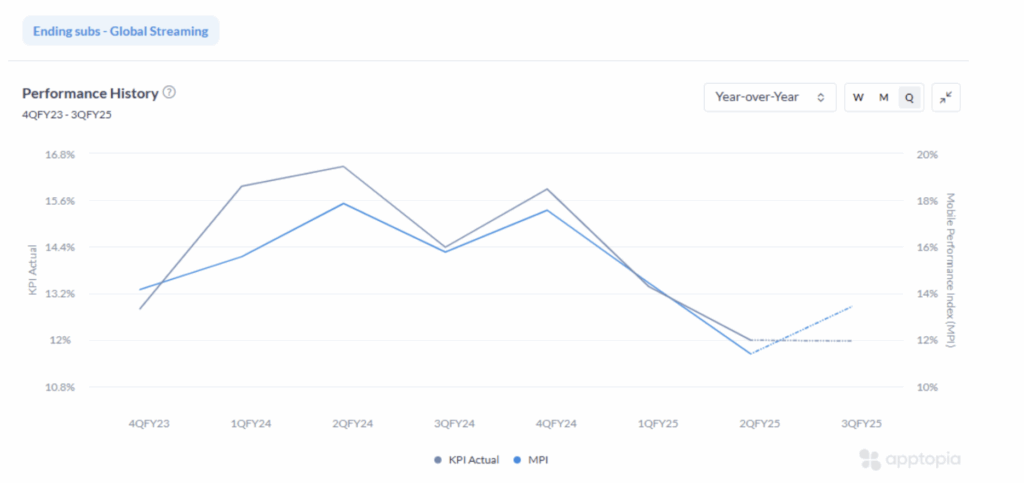 Yes, we know Netflix does not report Ending Subs quarterly anymore. But that is what makes mobile data so useful – you can still know what is happening with users even if NFLX will not tell you. Our MPI for NFLX shows a nice acceleration this quarter, driven by its MAUs showing YoY growth around the world.