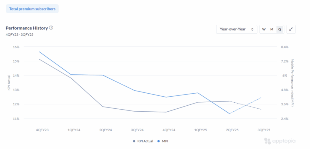Spotify – Apptopia MPI YoY Growth vs Premium Subs YoY Growth