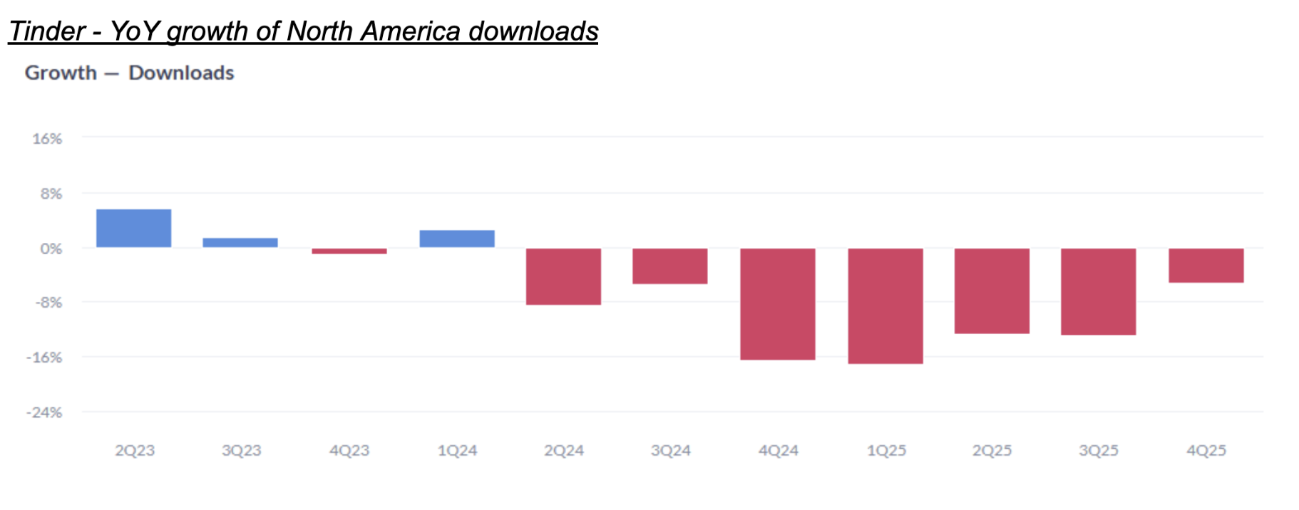 This combination of less-bad app downloads and rising engagement points to a better-than-expected outcome for Tinder Payers in 4Q25.