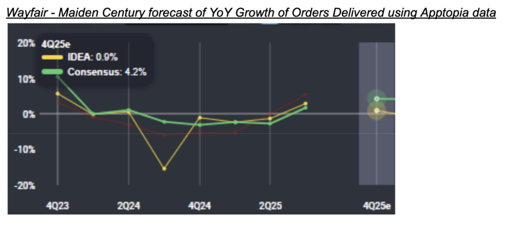 Once again, our friends at Maiden Century have made a specific forecast for Orders Delivered using Apptopia’s data. Their forecast for YoY growth is coming in below what the market expects: