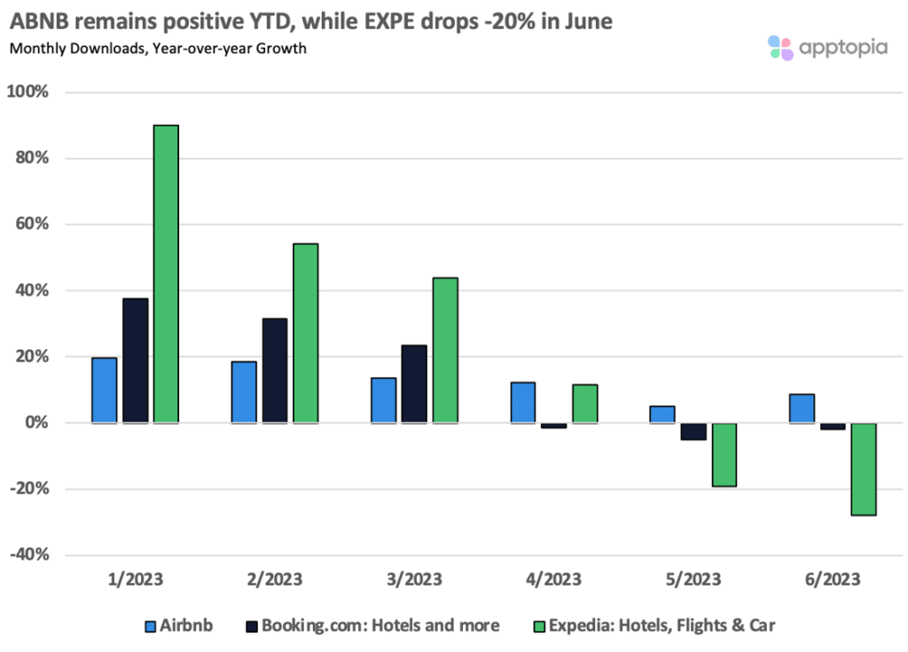 Meanwhile, Online Travel Agency app growth is down -9% YoY in 2Q.