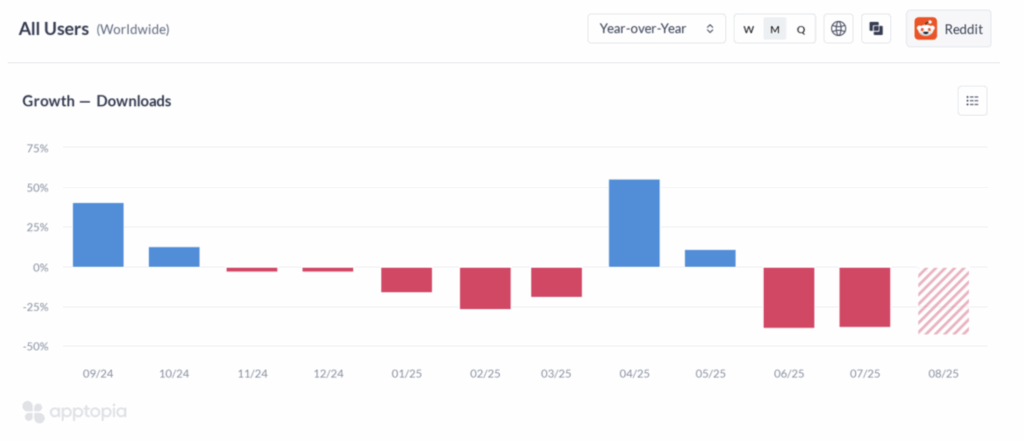 Reddit new user YoY growth – Worldwide