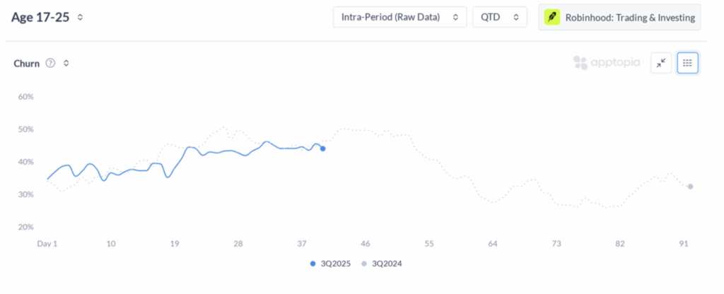 Robinhood user churn, ages 17-25 – United States