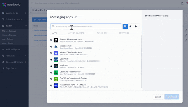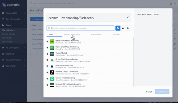 Another shortcut for building your competitive markets: Market Explorer now populates similar apps as suggestions when you are building a market. The suggested apps section can be expanded to view up up to 25 of the most closely associated apps.