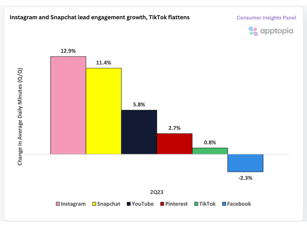 - Instagram leads peer Social apps in Average Daily Minutes growth in Q2, as time spent on TikTok flattens.