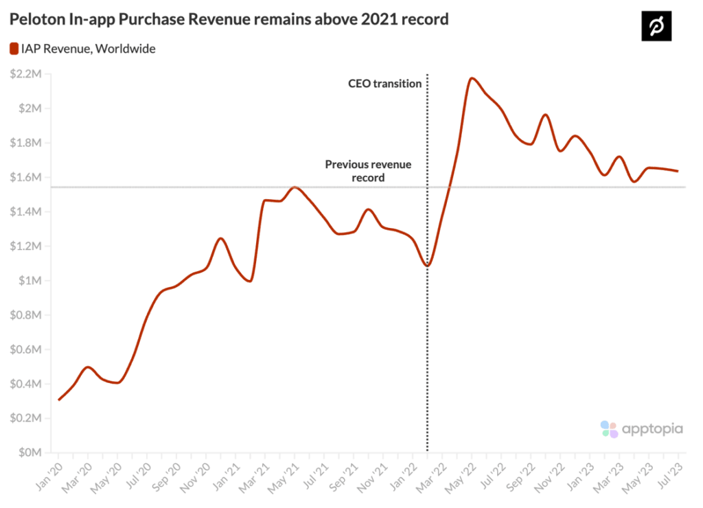 - As Peloton looks to upsell to a strong pipeline, Lululemon (LULU) launched a competitive app, Lululemon Studio, at the end of June, which has a compound weekly growth rate of 34% over 8 weeks.
