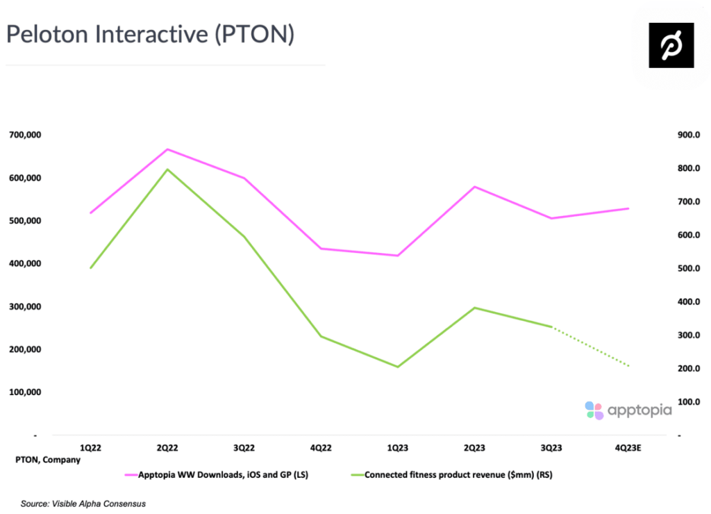 As Peloton (PTON) has pursued a pivot from hardware to a fitness-as-a-service strategy, mobile app data has become even more telling of customer activity – and the company’s progress toward this goal.