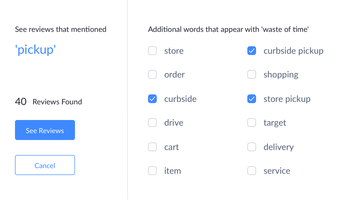 It’s hard to derive insight from 10s of thousands of reviews. We allow you to filter through the noise and quickly focus on the reviews which are most relevant for what you’re trying to learn.