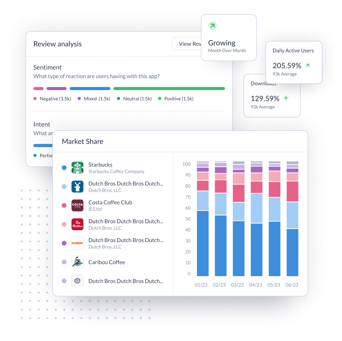 Apptopia’s sources of truth consolidate the information you need in an all-in-one platform allowing you to discover high potential opportunities and prospects entertaining a bake-off.