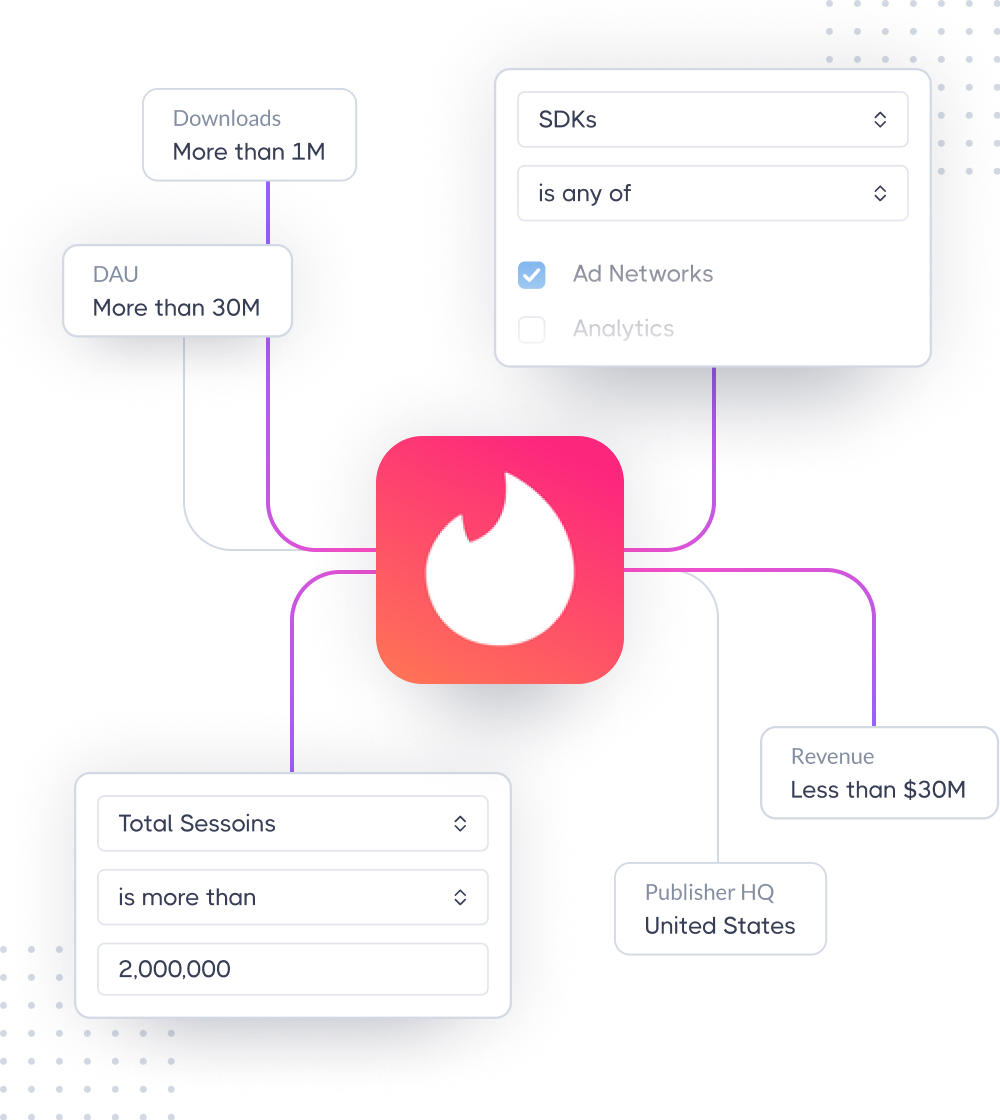 Bolster your lead scoring by layering on key app performance data (downloads, DAU, MAU, IAP, app permissions, HQ location, and more)